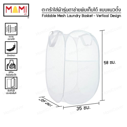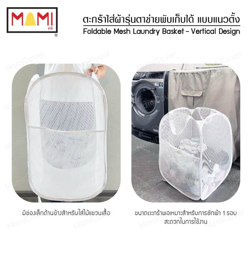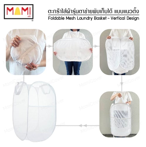 ตะกร้าใส่ผ้า รุ่นตาข่าย พับเก็บได้ แบบแนวตั้ง
