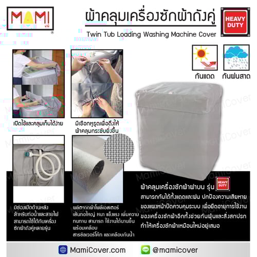 #ผ้าคลุมเครื่องซักผ้า #ถุงคลุมเครื่องซักผ้า #ที่คลุมเครื่องซักผ้า #ถังคู่ #กันแดด #กันฝน #กันฝุ่น #มามิ #WashingMachineCover #MAMI #MamiCover #Beko #Electrolux #Fisher & Paykel #Haier #Hitachi #Indesit #LG #Panasonic #Samsung #Sharp #Siemens #Singer #Toshiba #Whirlpool