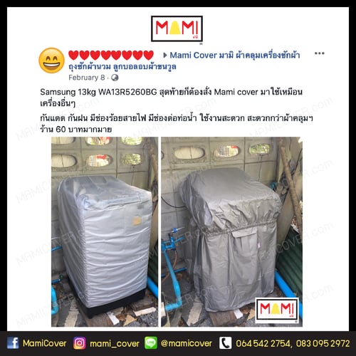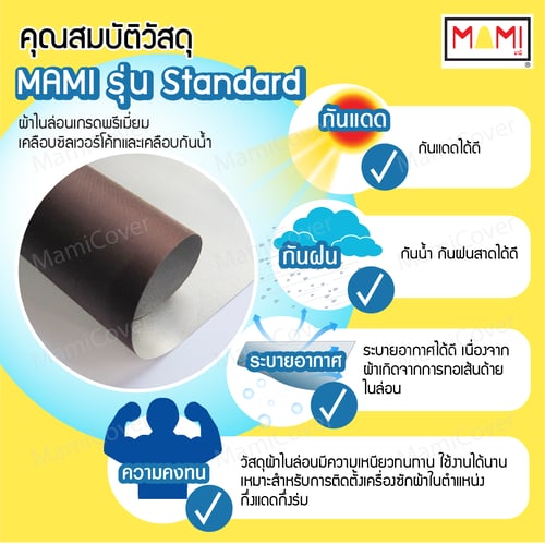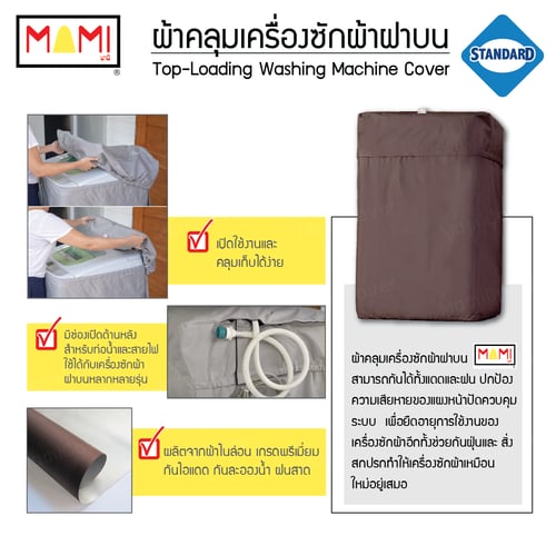ผ้าคลุมเครื่องซักผ้า Mami รุ่น Standard เหมาะสำหรับกันแดดกันฝนสาดไม่มาก หรือเครื่องตั้งอยู่ในร่ม