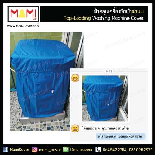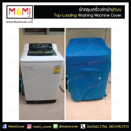 ผ้าคลุมเครื่องซักผ้าฝาบน Mami กันฝุ่น กันแดด กันฝน มีช่องร้อยท่อน้ำและสายไฟ