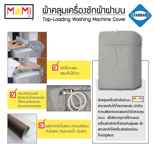ผ้าคลุมเครื่องซักผ้า Mami รุ่น Standard เหมาะสำหรับกันแดดกันฝนสาดไม่มาก หรือเครื่องตั้งอยู่ในร่ม