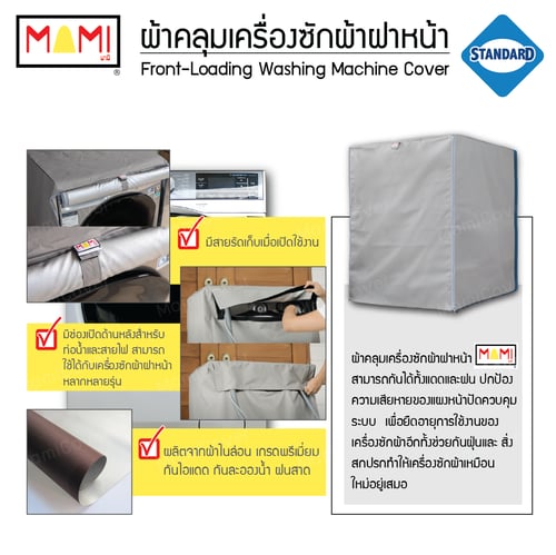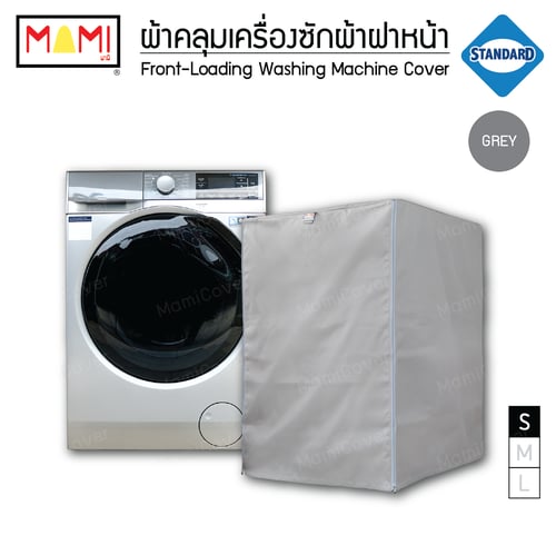 ผ้าคลุมเครื่องซักผ้า ฝาหน้า รุ่น Standard มีช่องร้อยท่อน้ำ+สายไฟ MAMI สีเทา (Front/Standard/Grey -M)